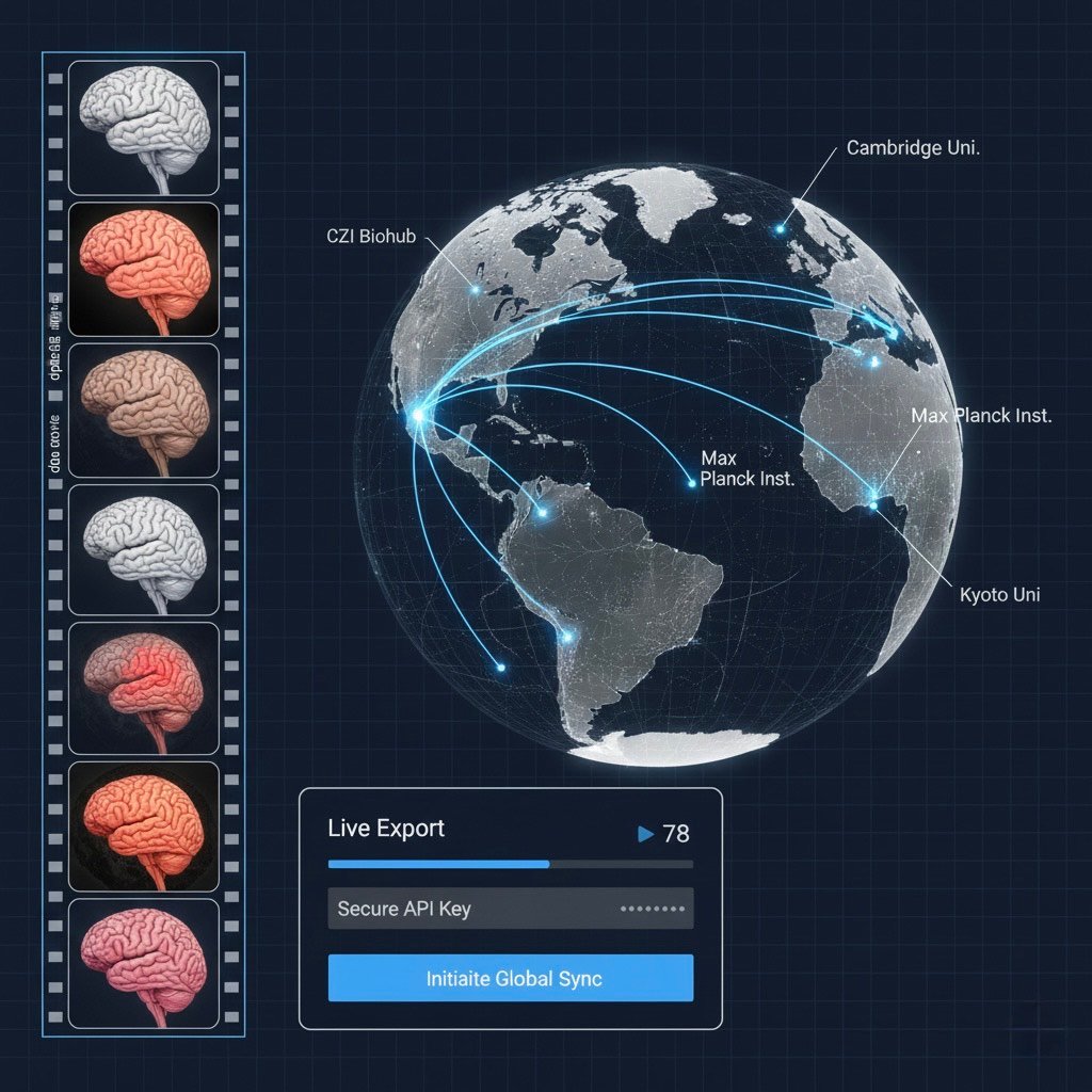 Processed intelligence is streamed to the global research community. We aim to provide the high-resolution, longitudinal movie of brain development needed to train the next generation of foundational Virtual Cell models.